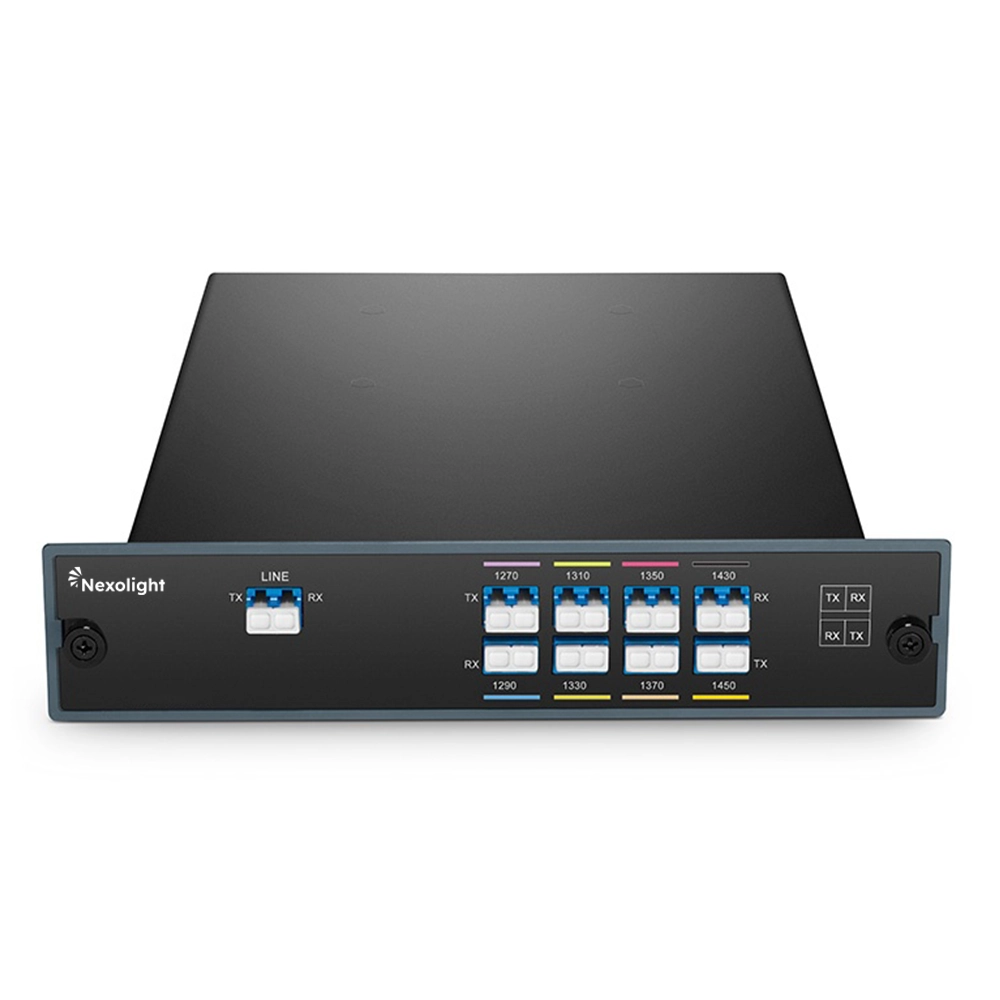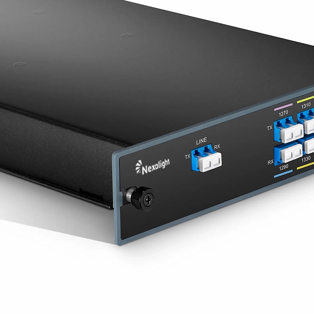 Le Mux/Demux CWDM Nexolight 8 canaux bande basse est optimisé pour les fibres monomodes ITU-T G.652, en excluant les longueurs d’onde 1390 nm et 1410 nm afin d’éviter le pic d’absorption de l’eau autour de 1400 nm.