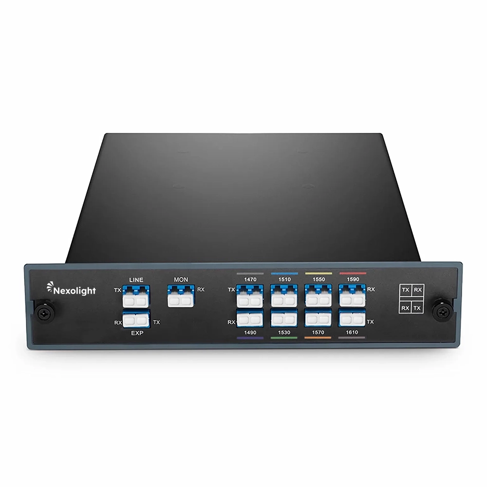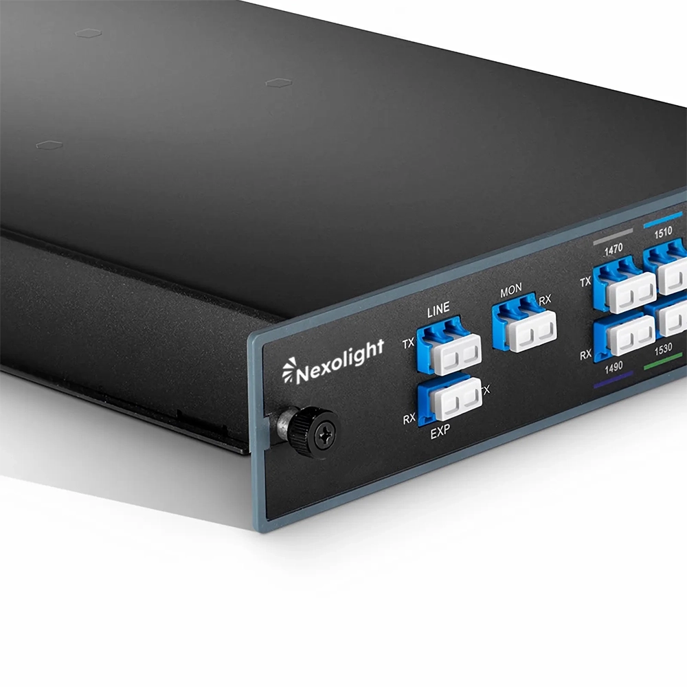 Le Mux/Demux CWDM Nexolight 8 canaux, basé sur la technologie TFF, offre une solution passive évolutive pour les réseaux nécessitant une capacité accrue sur fibre existante. Il permet de multiplexer et démultiplexer 8 canaux CWDM sur une paire de fibres monomodes, avec une perte d’insertion typique de 3,1 dB.
